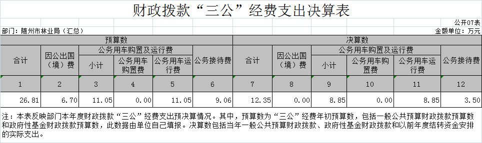 七、財政撥款“三公”經(jīng)費支出決算表