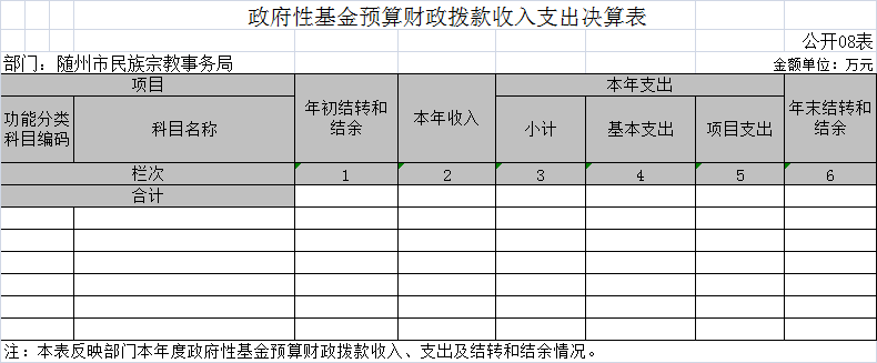 2018年度,市民宗局因無政府性基金預算,所以“政府性基金預算財政撥款收支決算表”無數據。