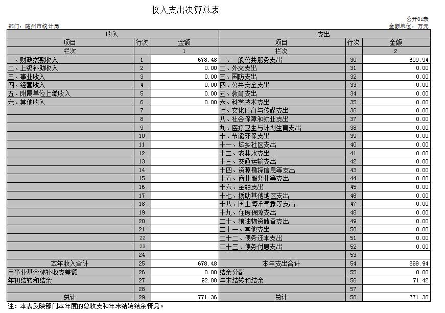 2018年支出771.36萬元,比上年704.24萬元增加9.53%。其中本年支出699.94萬元(其中一般公共服務(wù)支出699.94萬元),比上年611.36增加14.49%;年末結(jié)轉(zhuǎn)和結(jié)余71.42萬元,比上年92.88萬元減少23.11%。支出增加原因是開展隨州全國第四次經(jīng)濟普查項目。