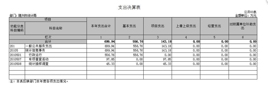 第三部分 隨州市統(tǒng)計局2018年決算公開表格