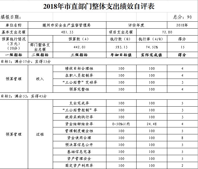 (五)2018年度市安全生產(chǎn)監(jiān)督管理局部門整體支出績(jī)效自評(píng)表(附后)