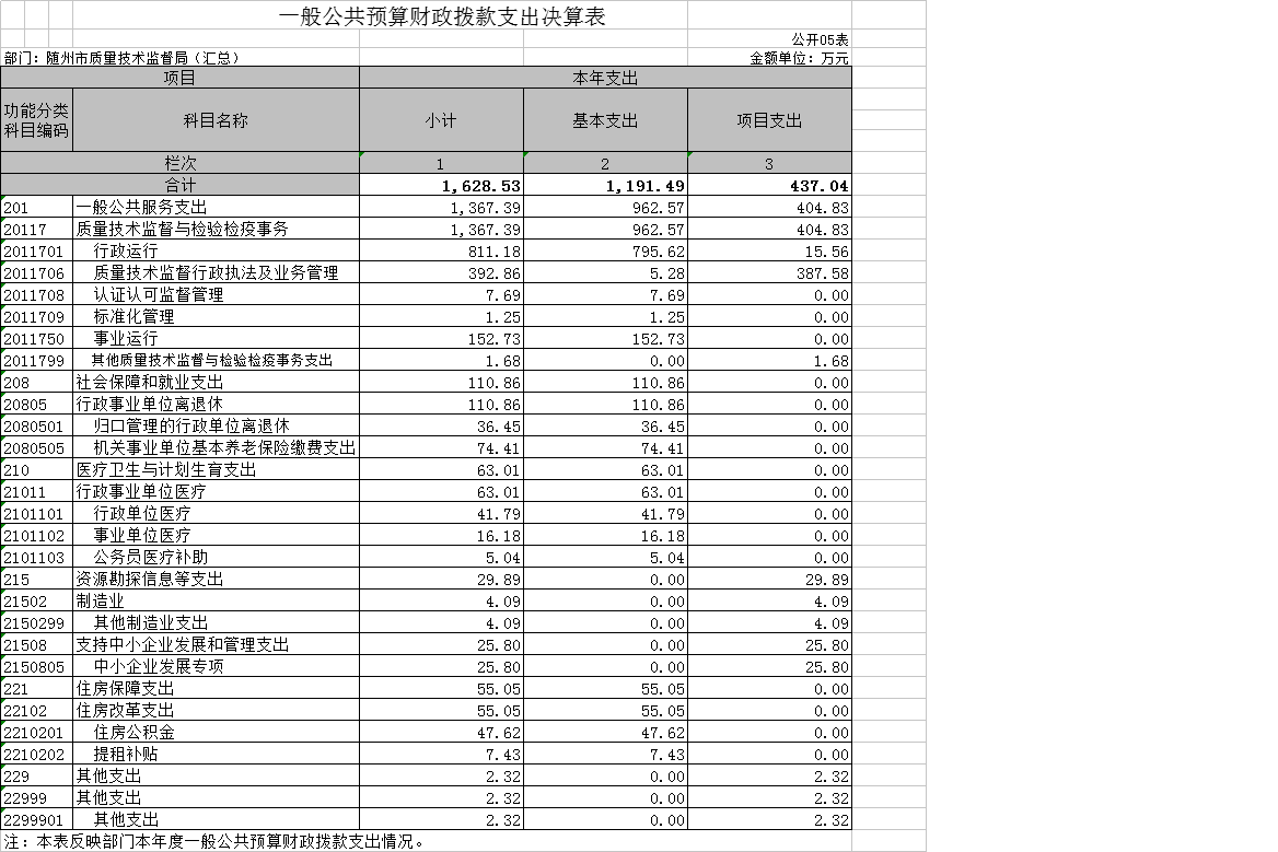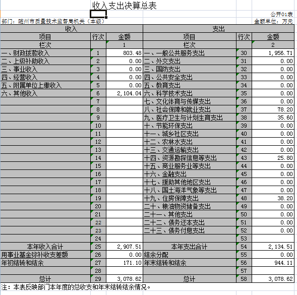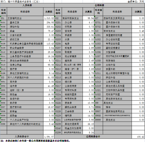 1、隨州市質(zhì)量技術(shù)監(jiān)督局(匯總)2018年度部門決算公開表