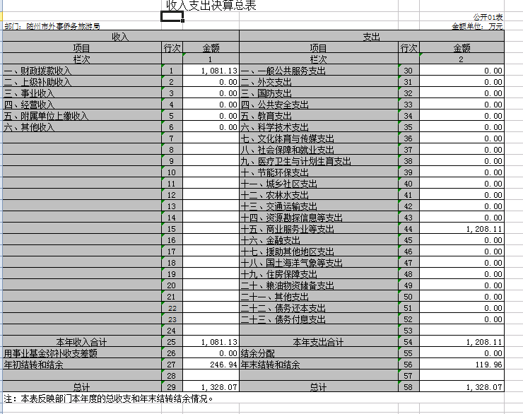 2018年本年一般公共預算財政撥款收入1081.13萬元,年初財政撥款結轉和結余246.94萬元,合計1328.07萬元。