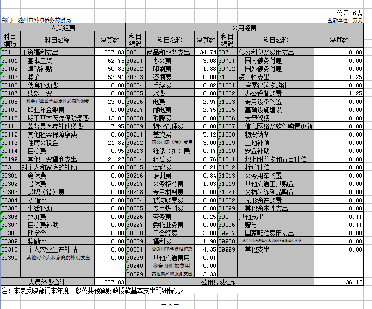 6、一般公共預算財政撥款基本支出決算表(公開06表)