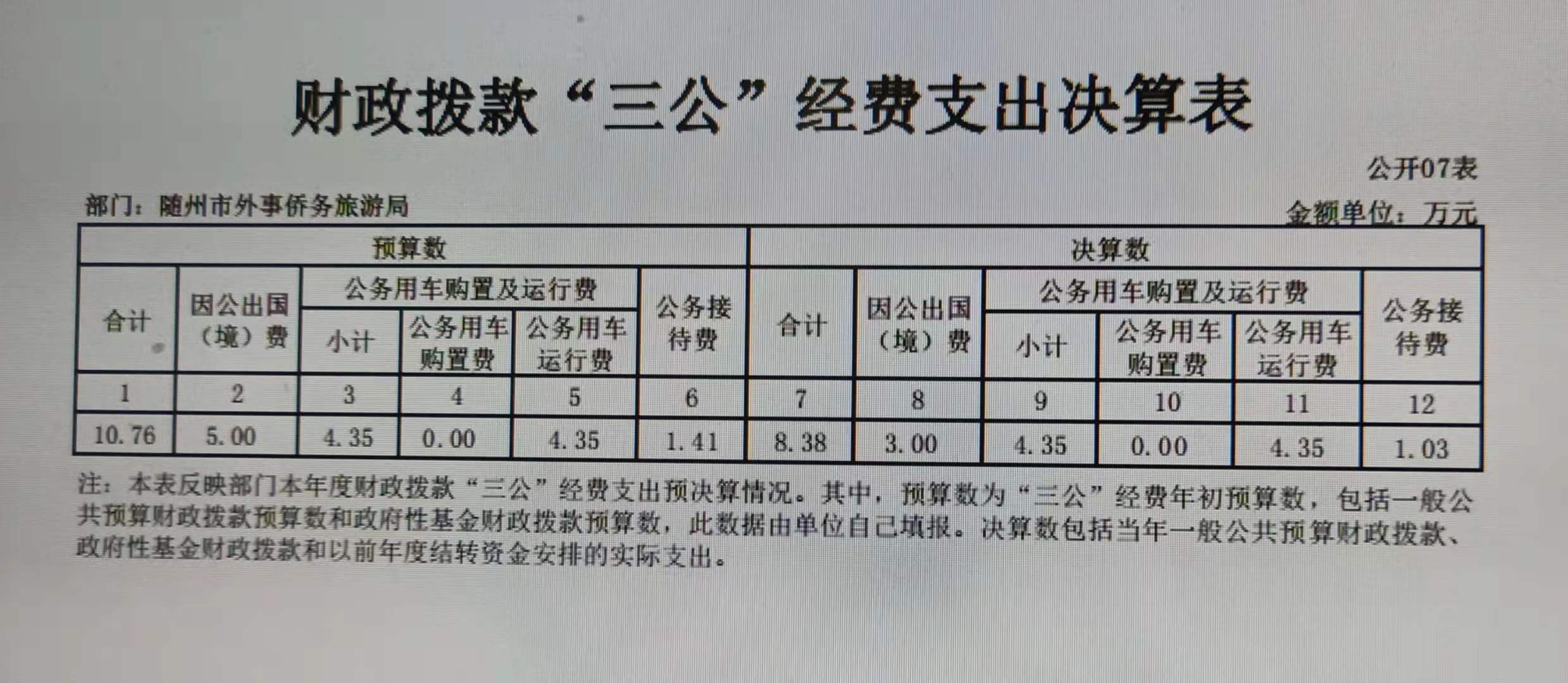 (七)一般公共預算財政撥款“三公”經費支出決算情況(公開07表)