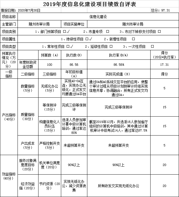 3.審計信息化建設項目績效自評: