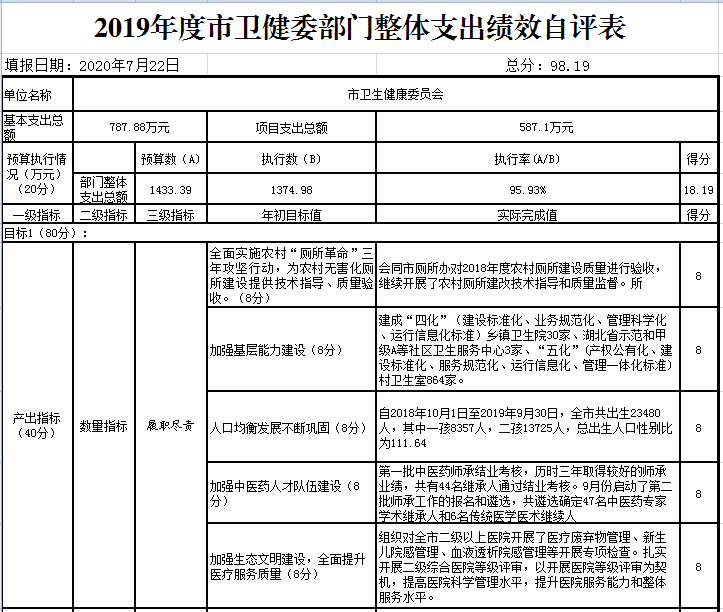 第四部分:2019年度部門本級和匯總決算及部門經費支出績效自評表