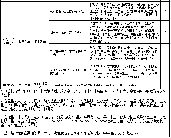根據《市財政局關于批復2019年度部門決算的通知》(隨財函〔2020〕170號)和《市財政局關于做好2019年度市級部門決算信息公開工作有關事項的通知》(隨財函〔2020〕171號)文件精神,我委成立了由副主任陳春華同志任組長,相關科室負責人為成員的績效評價工作領導小組,負責績效評價工作的組織領導和具體實施。評價小組采取檢查基本支出、項目支出有關賬目,收集整理支出相關資料,并根據各部門報送的績效自評材料進行分析,形成評價結論。