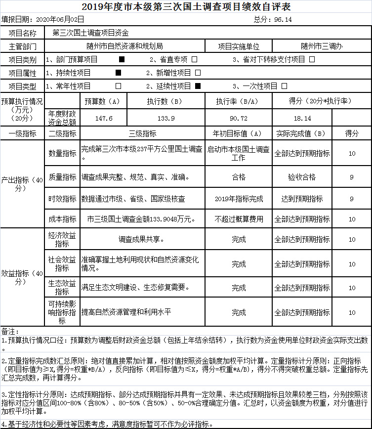 隨州市市本級第三次國土調查項目績效自評綜述: