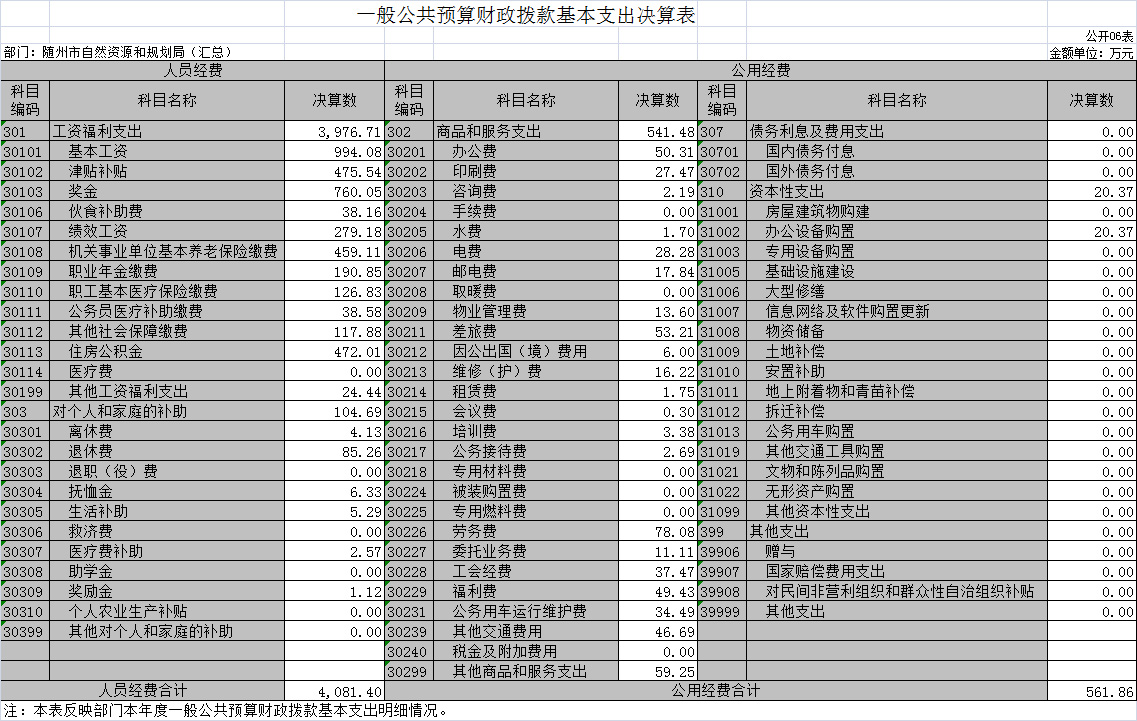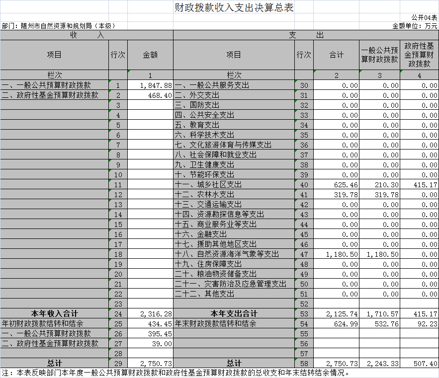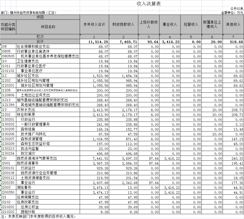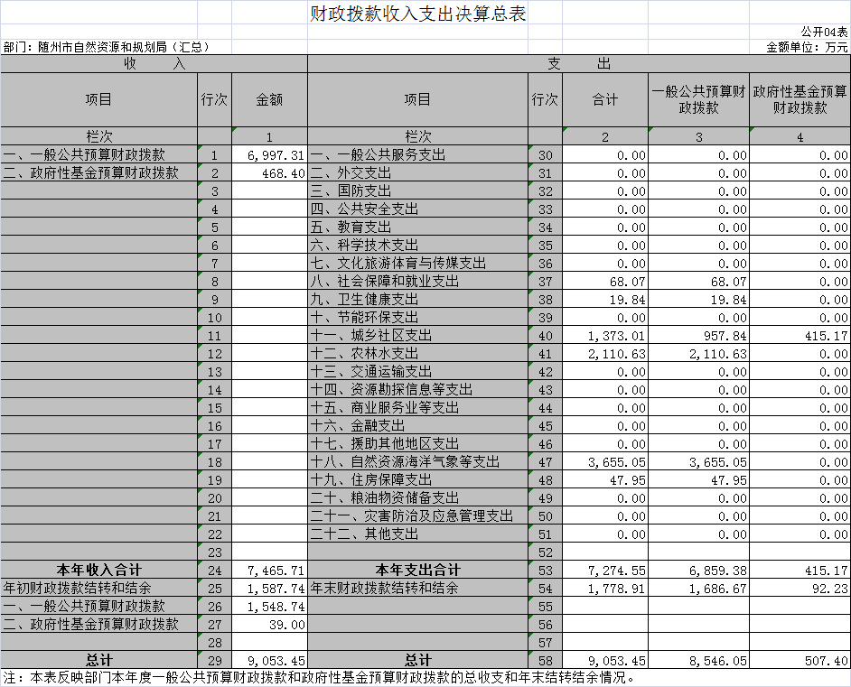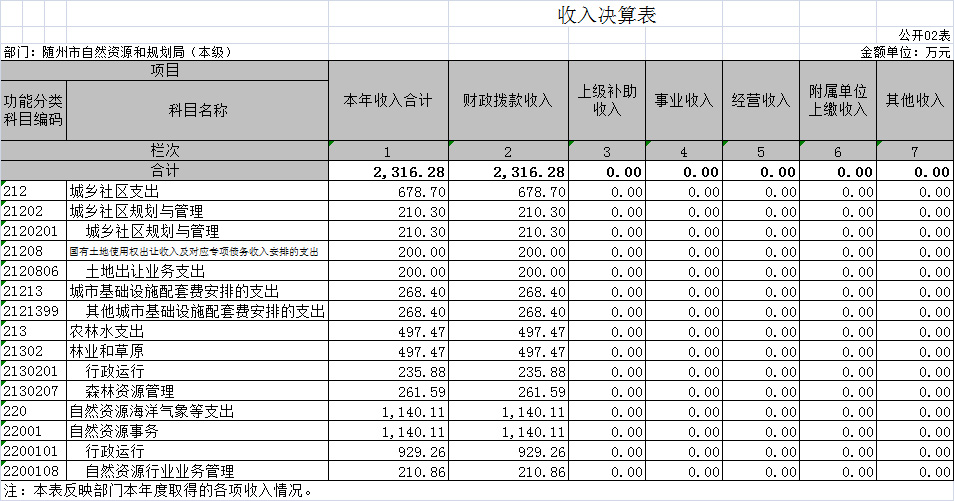 第四部分、隨州市自然資源和規劃局2019年部門決算表