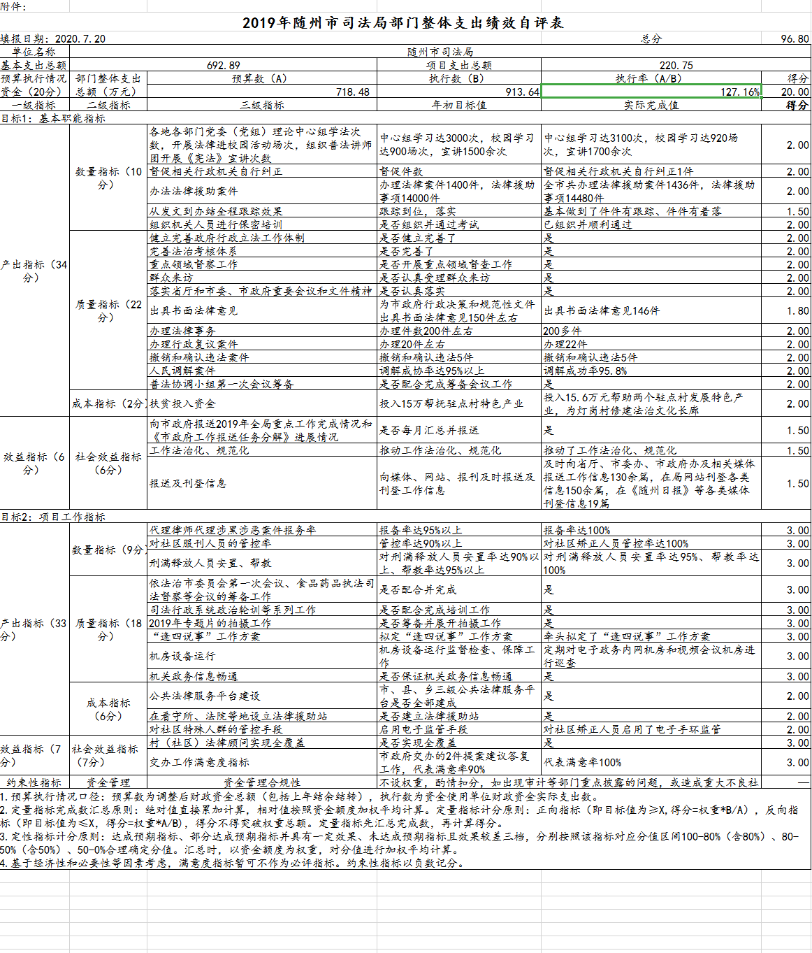 附件:《2019年隨州市司法局部門整體支出績效自評表》