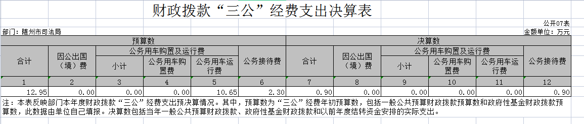 ????3、本單位執法用車2輛,2019年購置一般公務用車1輛,使用2018年省司法廳裝備辦案結余經費購置此車,故未在2019年預算時列入預算,公務用車運行維護費年初預算10.65萬元,決算數為0萬元,主要原因2019年我單位執法用車及公務用車維護使用的省司法廳裝備辦案項目經費,未使用一般公共預算財政撥款。