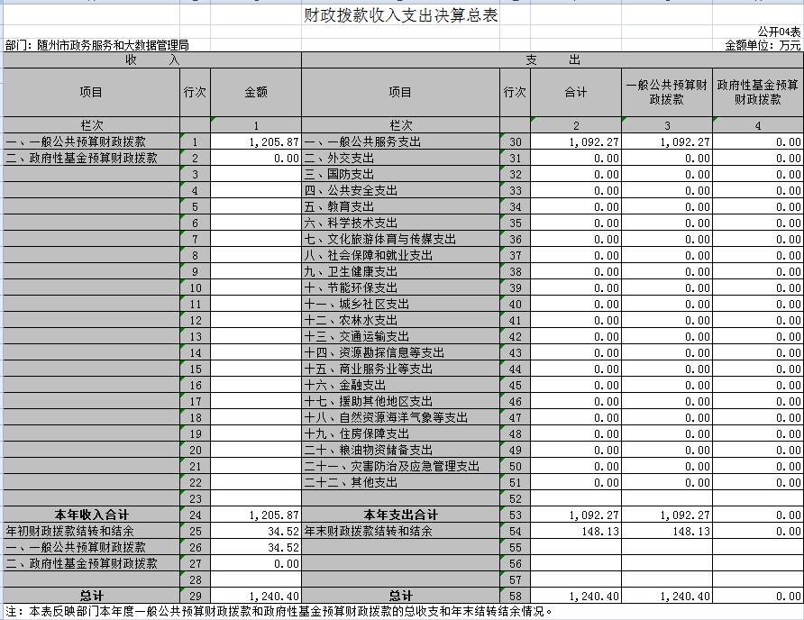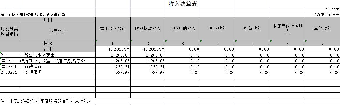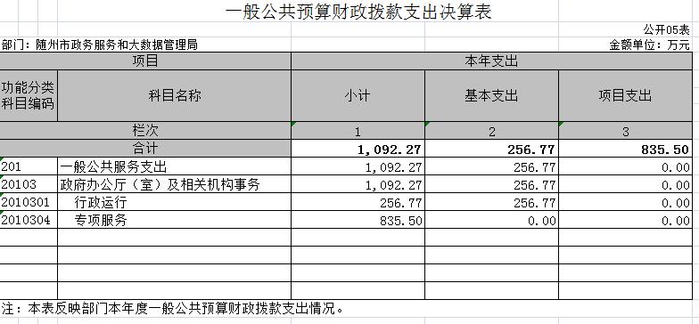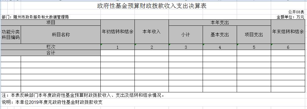 第四部分? 隨州市政務服務和大數據管理局2019年決算表