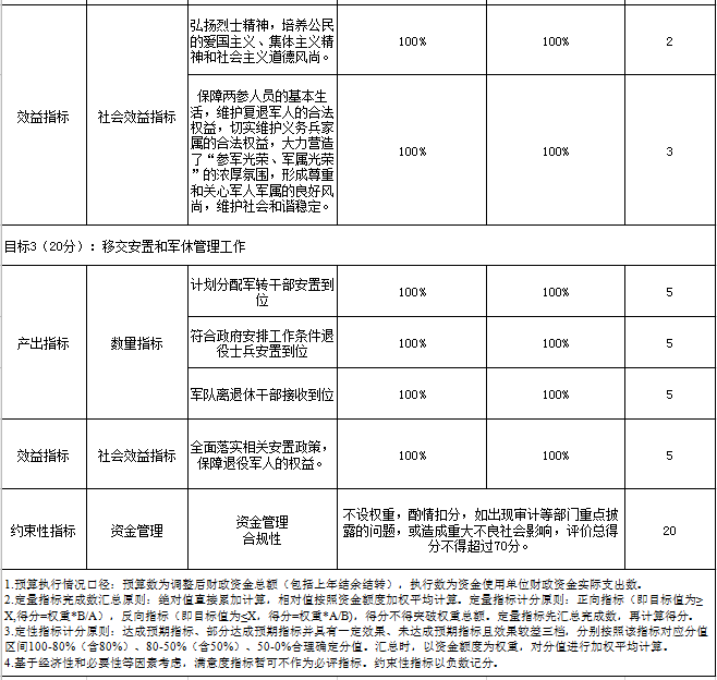根據預算績效管理要求,市退役軍人事務局認真組織開展績效評價。共涉及項目8個,占一般公共預算項目支出總額的100%。從評價情況來看,年度總體目標基本完成,項目總體達到了預期績效,退役軍人事務工作服務效率有效提升,較好地完成了全年工作。 ? ? ?? ? ? ? ? ? ? ? ? ? ? ? ? ? ? ? ? ? ? ?