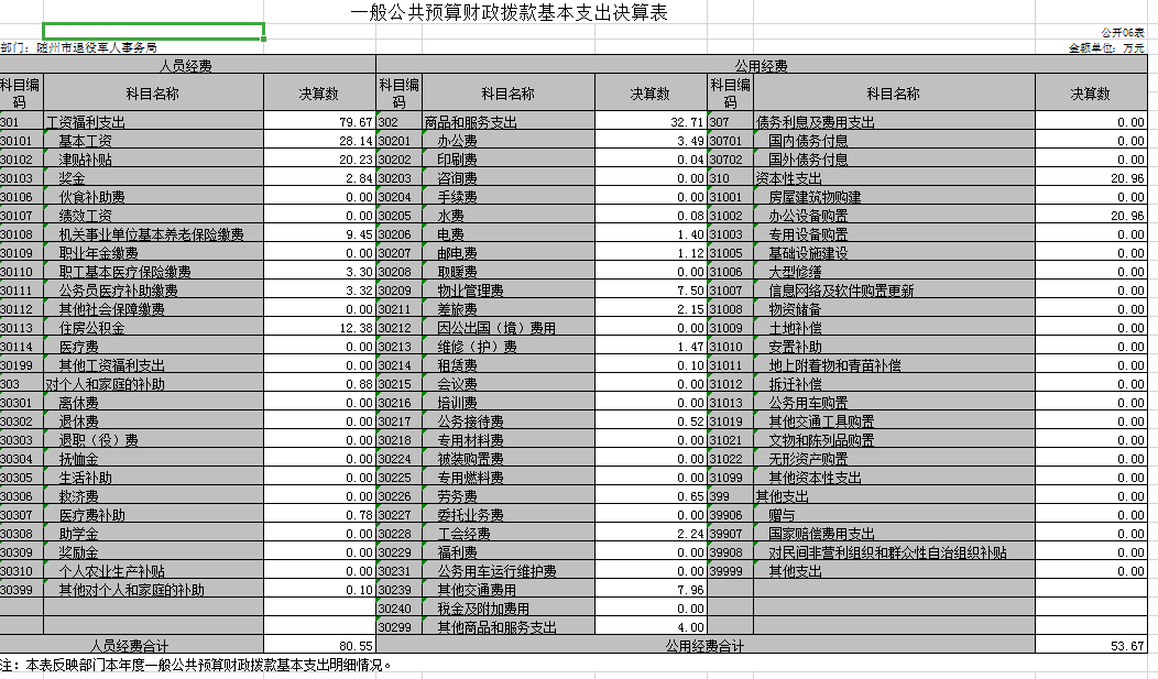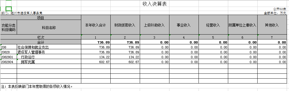 第三部分 隨州市退役軍人事務局2019年部門決算公開表