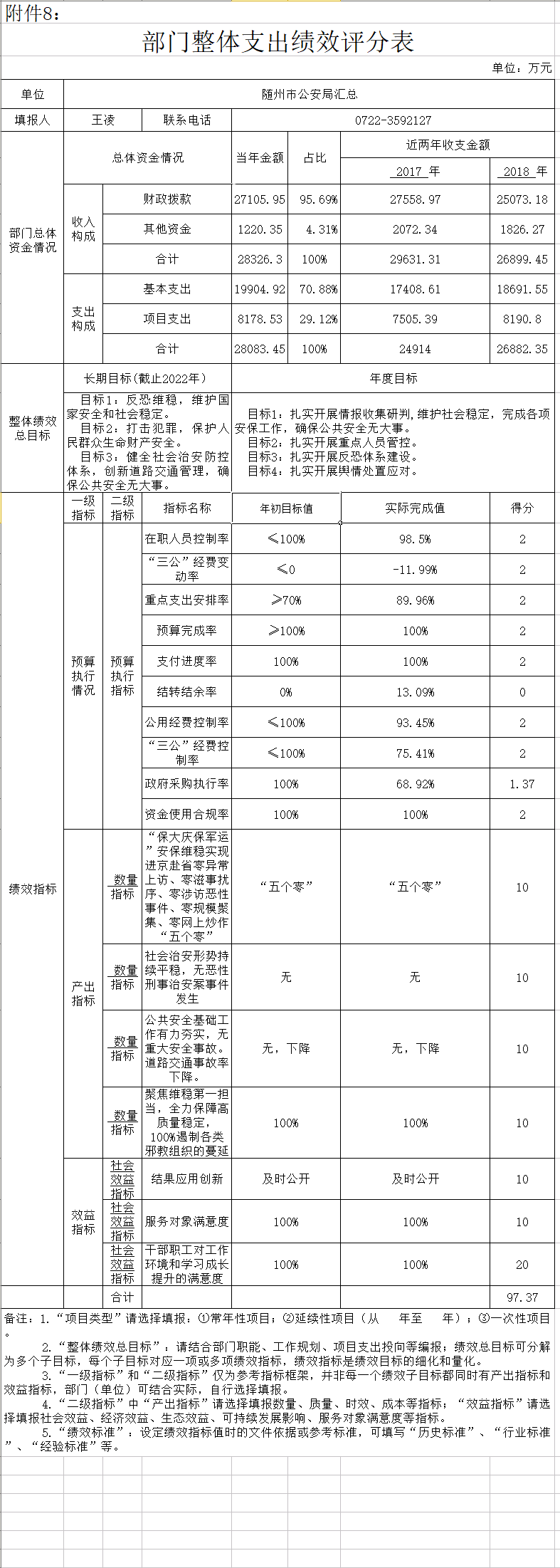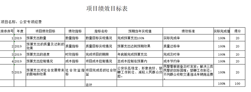 隨州市公安局于2019年12月填報部門整體績效目標申報表,制定出單位整體績效總目標和年度目標,根據年度目標制定出切實可以執行的年度績效指標用以考核工作業績。