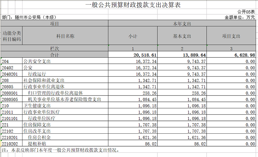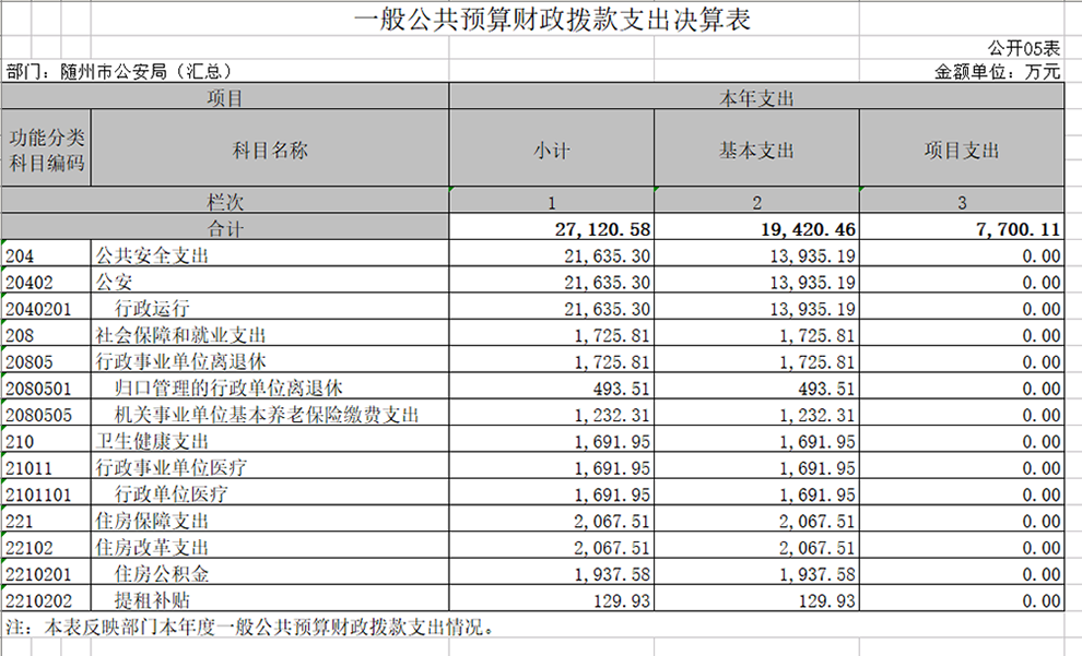 隨州市公安局本級2019年決算公開報告