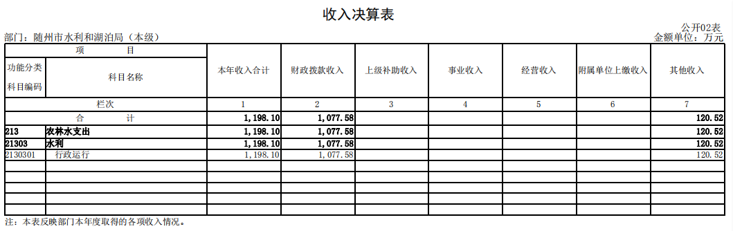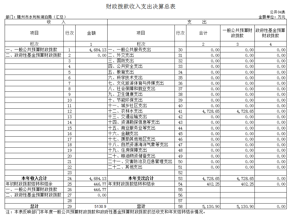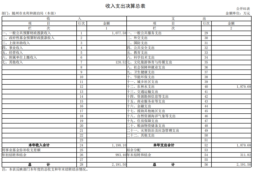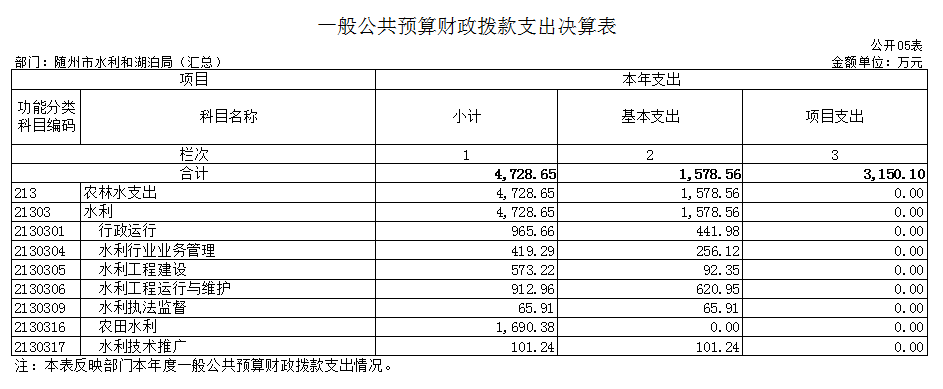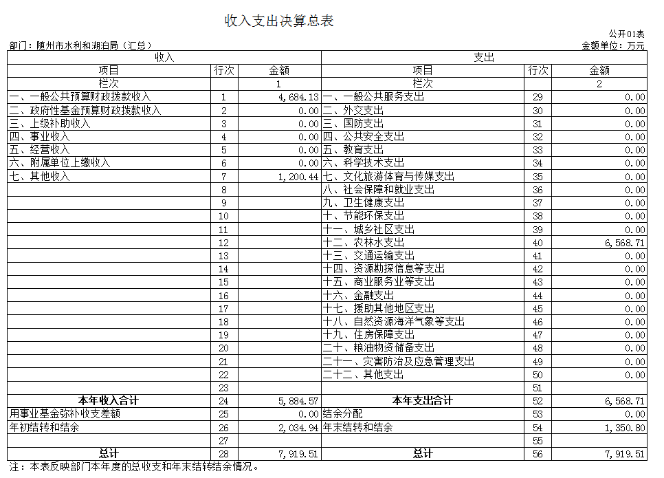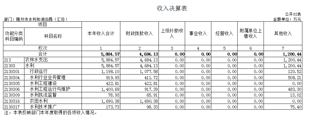 2019年納入部門決算管理單位7個,隨州市水利和湖泊局(本級)、水政監察支隊、水利技術推廣中心、河道堤防建設管理局、先覺廟水庫工程管理局、白云湖水利工程管理局、隨中灌區管理局。
