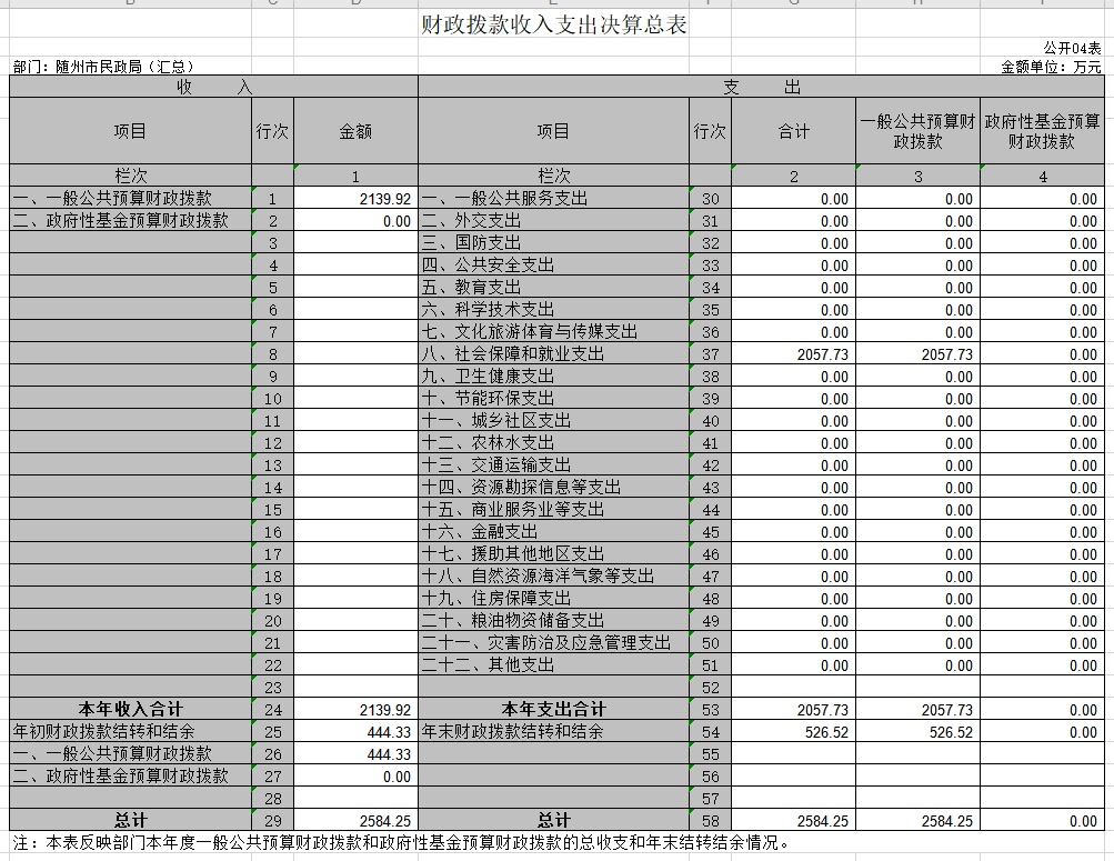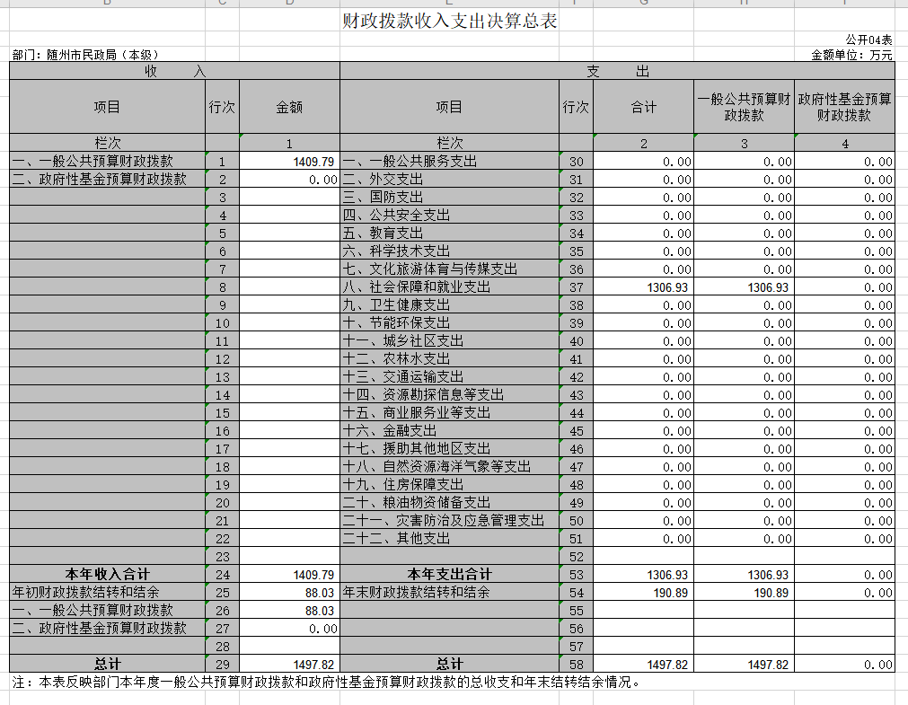 ? 本年度隨州市民政局(匯總)及隨州市民政局(本級)無政府性基金預(yù)決算收支情況。