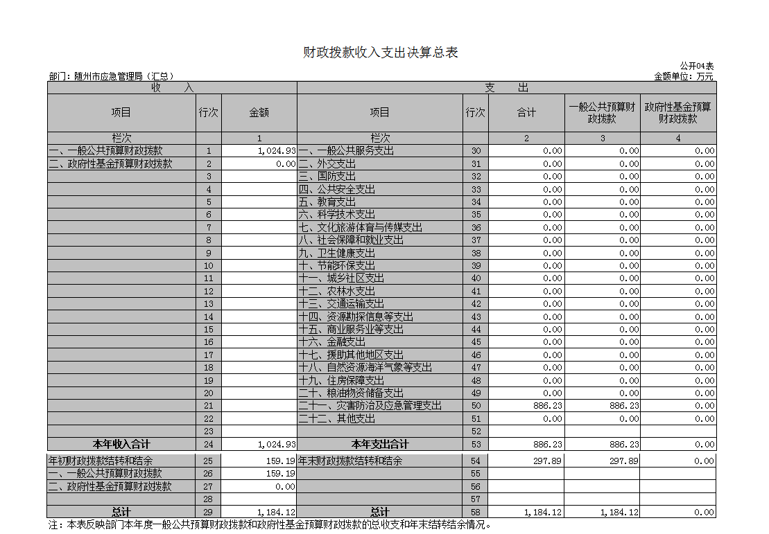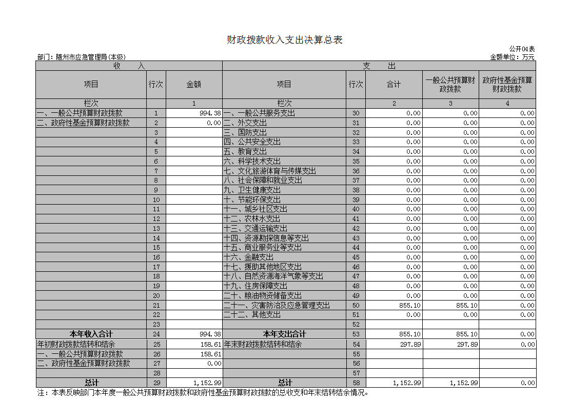 第三部分??隨州市應(yīng)急管理局2019年部門決算表