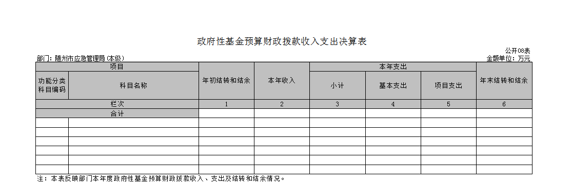 隨州市應(yīng)急管理局(匯總)2019年度無政府性基金預(yù)算。