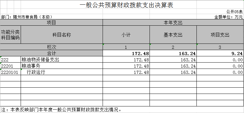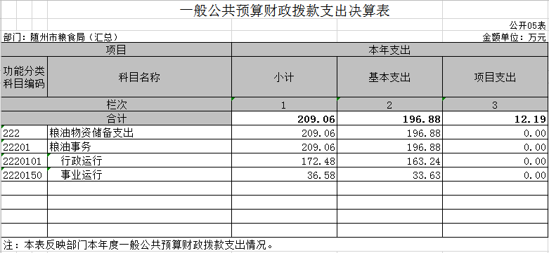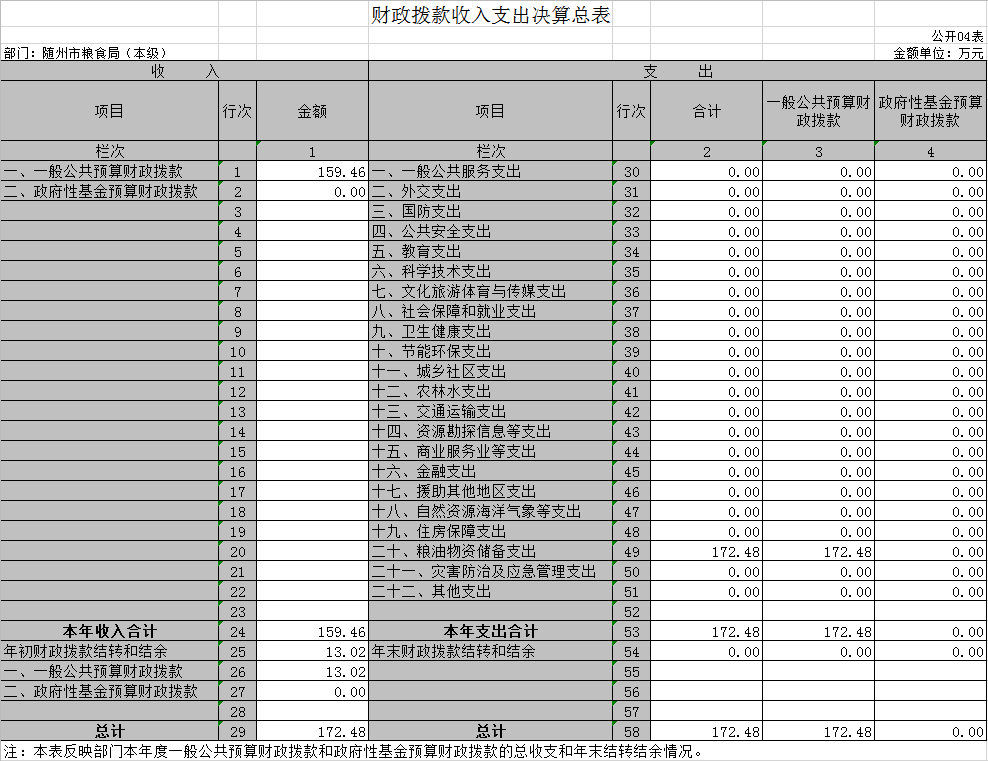 ?????????????????隨州市糧食局2019年部門決算公開表(匯總)