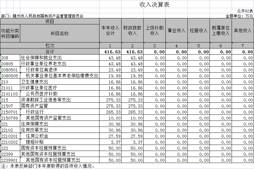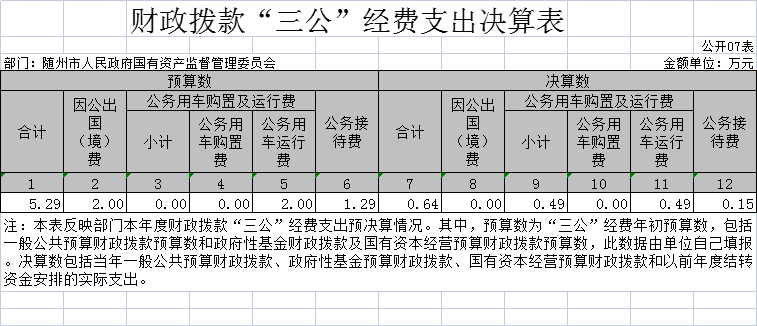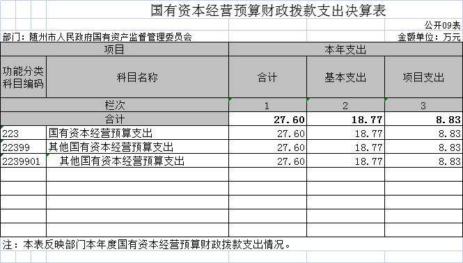 隨州市國資委2020年部門決算公開