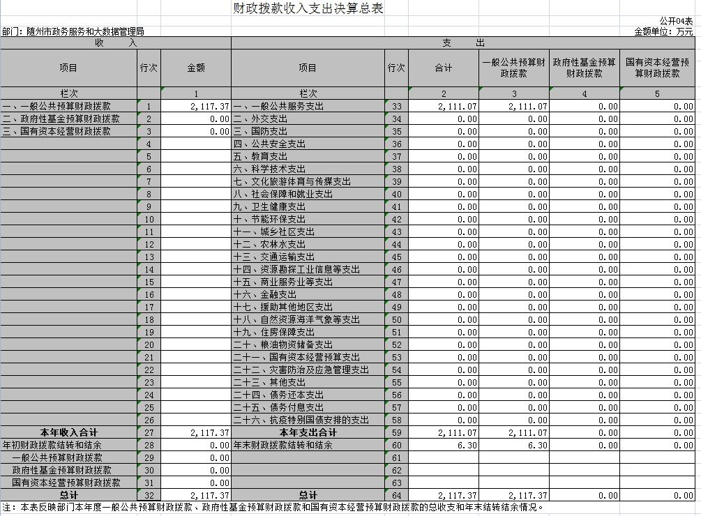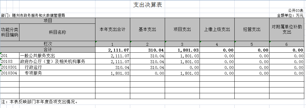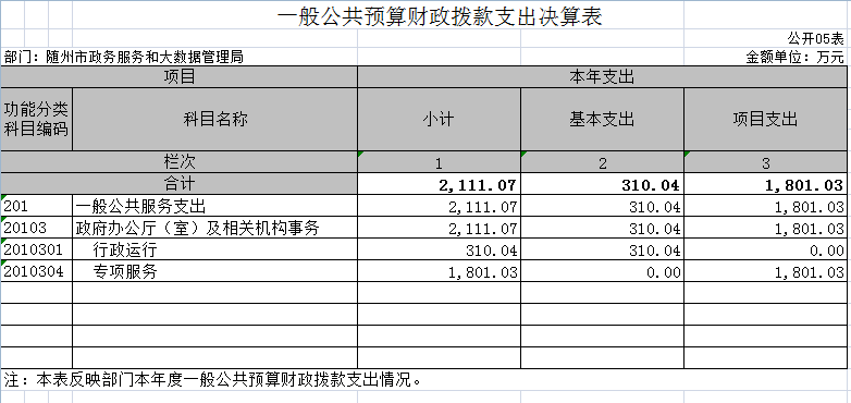 第三部分 隨州市政務服務和大數據管理局2020年決算表