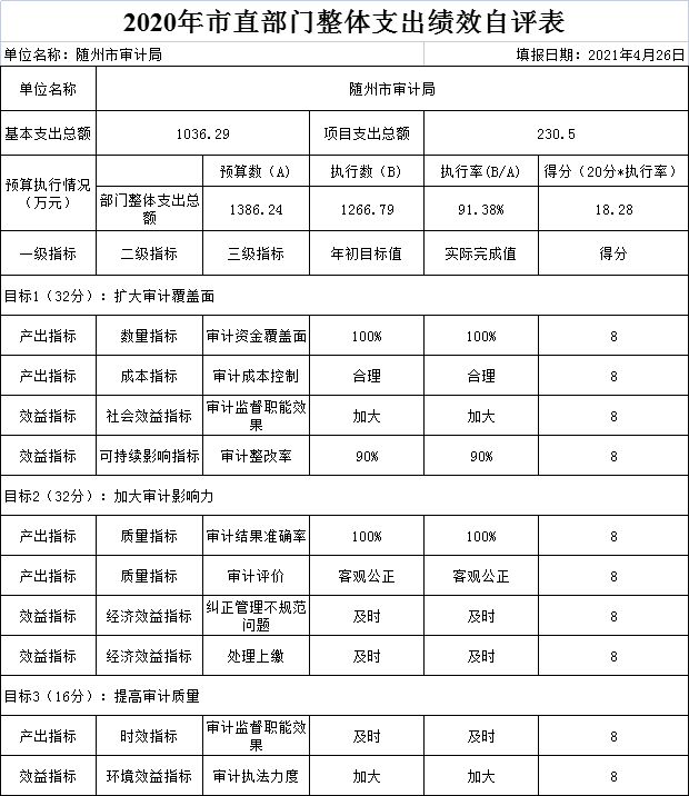 附件:2020年度隨州市審計局整體支出績效自評表