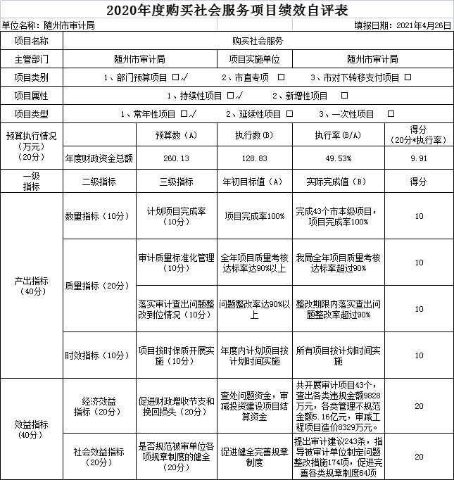 附件:2020年度隨州市審計局項目支出績效自評表