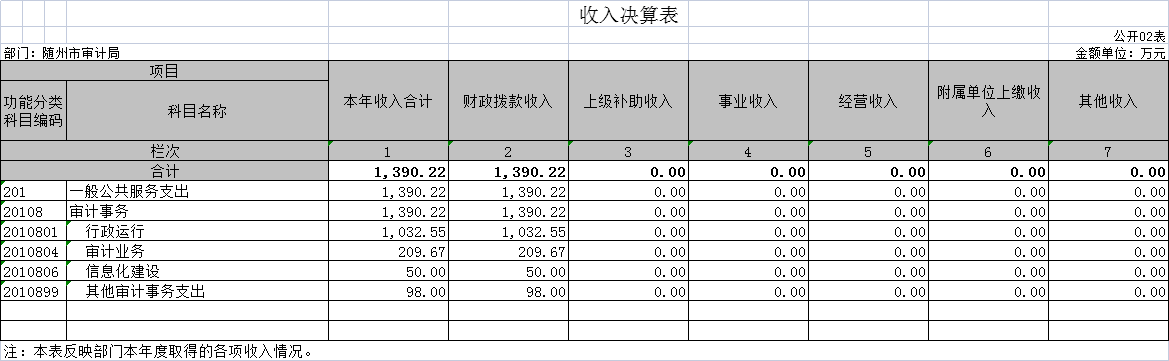 隨州市審計局2020年部門決算公開