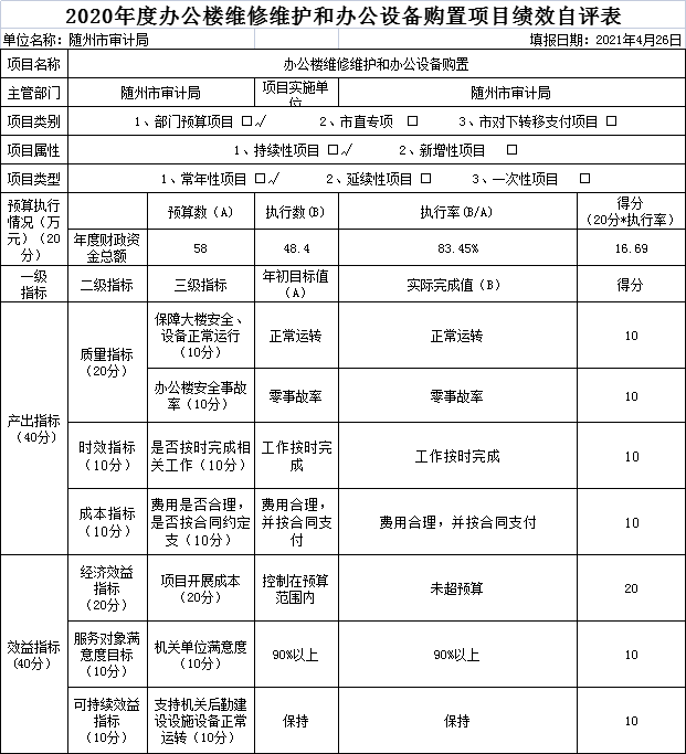 4.辦公樓維修維護和辦公設(shè)備購置項目績效自評: