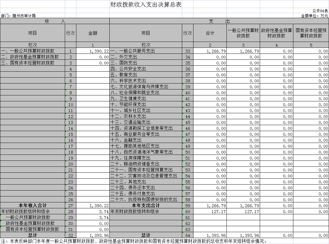 四、財政撥款收入支出決算總表(公開表04表)