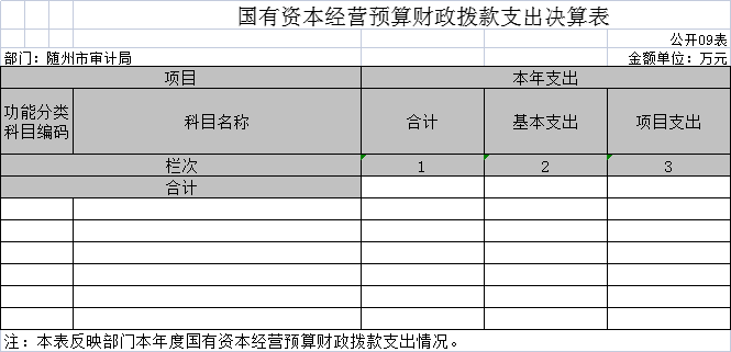 九、國有資本經(jīng)營預(yù)算財政撥款收入支出決算表(公開表09表)