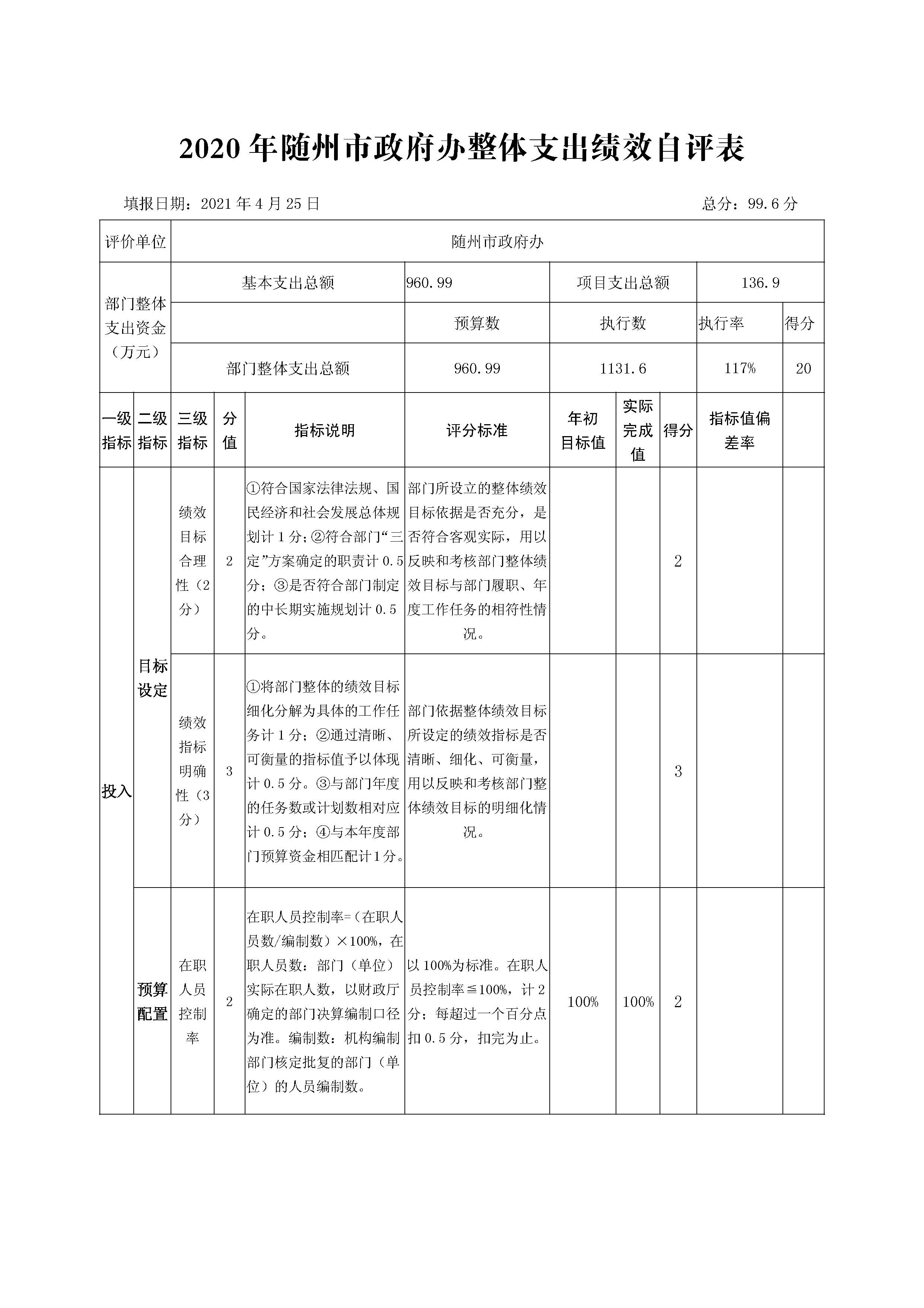 根據(jù)預(yù)算績效管理要求,我辦嚴格按照市財政局《關(guān)于開展2020年度市級財政支出績效自評工作的通知》(隨財函〔2021〕號)要求,認真組織開展2020年整體支出績效自評工作,采取打分評價的形式,滿分設(shè)置為100分,其中:預(yù)算執(zhí)行情況20分,產(chǎn)出指標40分,效益指標40分。自評評分總分99.6分,從整體情況看,我辦部門整體支出資金管理規(guī)范,項目管理到位,政策執(zhí)行有力,有效發(fā)揮了財政資金的使用效率。項目在組織過程中,嚴格按規(guī)定實施,各項工作均有實施方案并履行報批手續(xù)。項目經(jīng)費的使用上,在保證各項任務(wù)順利完成的同時,嚴格落實厲行節(jié)約的原則。各項專項資金都安排專門責任人,按專項資金的用途專款專用。在使用專項資金時,嚴格執(zhí)行專項資使用制度和財務(wù)制度,同時對各項目資金的使用流程進行監(jiān)督,定時查看財務(wù)報表檢查項目資金使用情況。