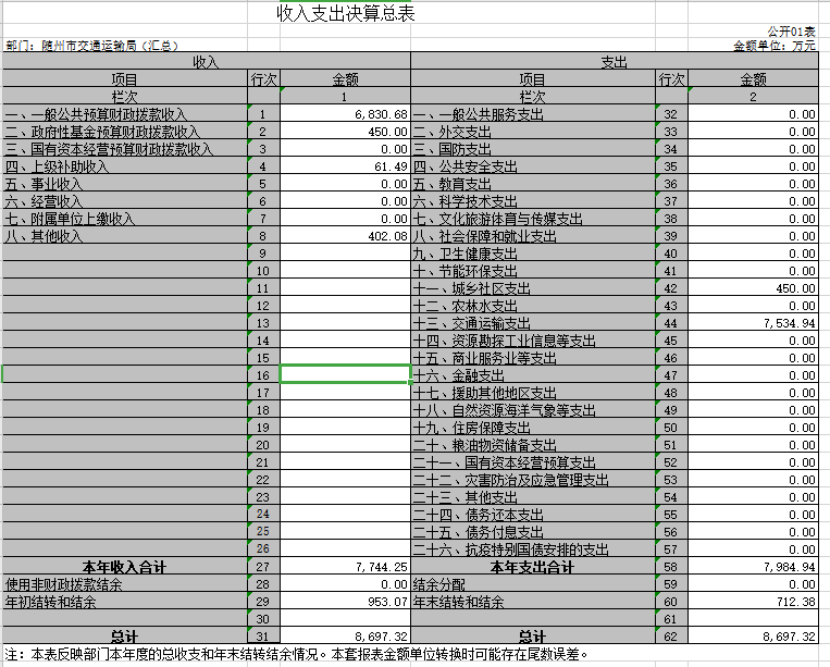 隨州市交通運(yùn)輸局(系統(tǒng)匯總) 政府性基金性收支450萬(wàn)元,相比去年增加450萬(wàn)元,主要是市公路局報(bào)送,待資金達(dá)到之后全額撥付下級(jí)單位。