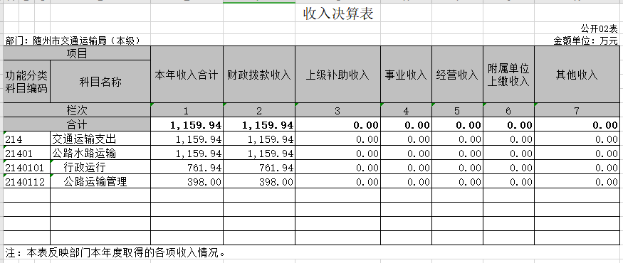 隨州市交通運(yùn)輸局(系統(tǒng)匯總)??無(wú)國(guó)有資本經(jīng)營(yíng)預(yù)算財(cái)政撥款收入支出。