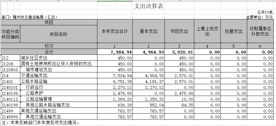 第三部分??交通部門(mén)2020年部門(mén)決算表