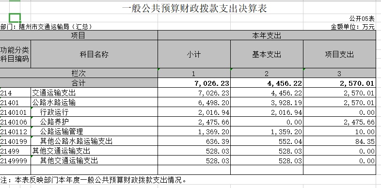 五、一般公共預(yù)算財(cái)政撥款支出決算表(公開(kāi)表05)
