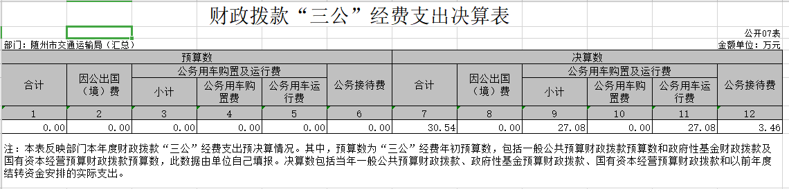 七、財(cái)政撥款“三公”經(jīng)費(fèi)支出決算表(公開(kāi)表07)