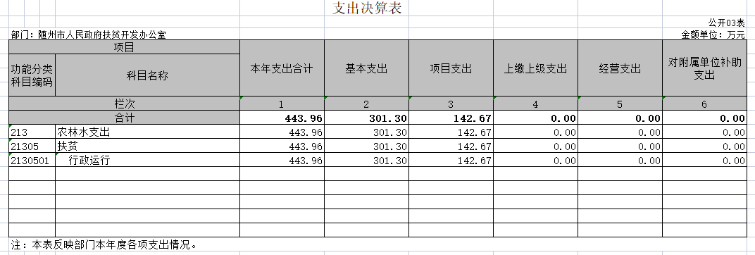 第三部分?隨州市人民政府扶貧開發辦公室2020年部門決算表