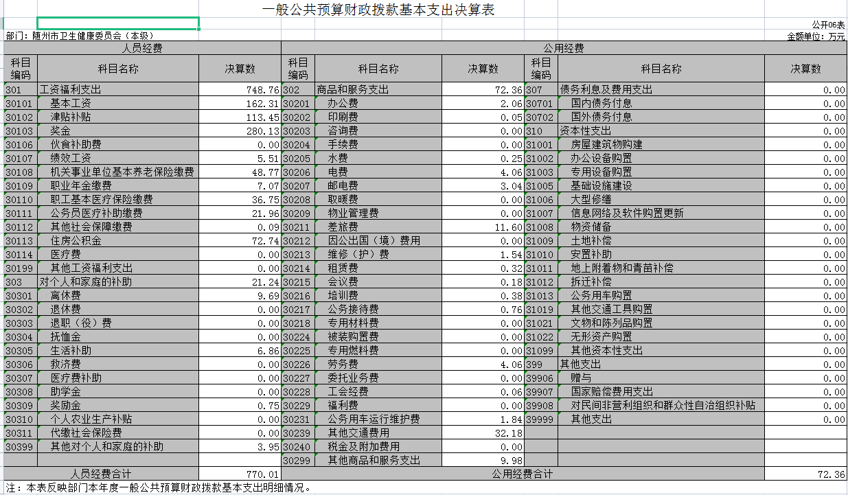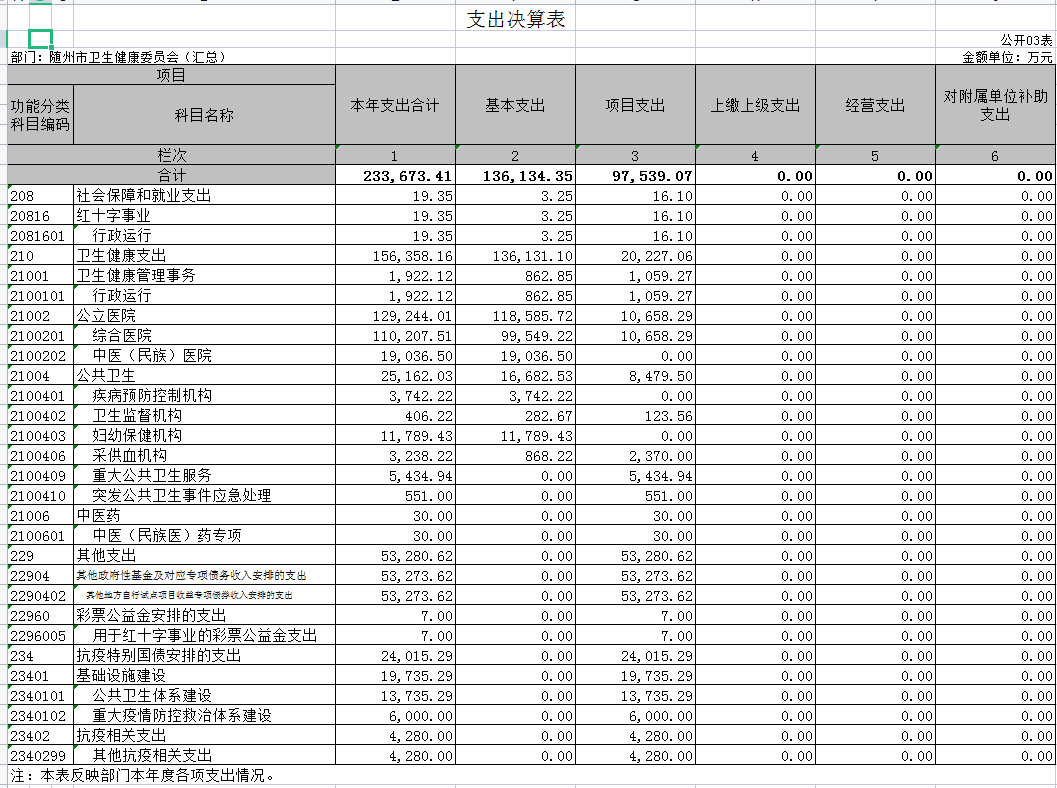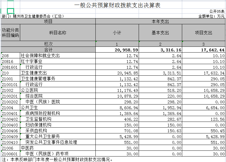根據《市財政局關于做好2020年度市級部門決算信息公開工作有關事項的通知》(隨財函〔2021〕189號)文件精神,現將隨州市衛生健康委員會2020年度部門決算情況說明如下:
