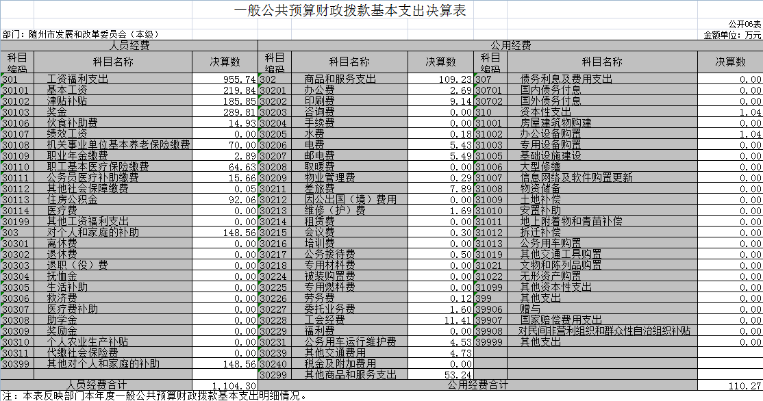 2020年度一般公共決算支出1760.94萬元,比年初預算1682.86萬元增加78.08萬元,其中:基本支出1214.57萬元,比年初預算777.86萬元增加436.71萬元,項目支出385.52萬元,比年初預算905萬元減少519.48萬元。原因:基本支出較預算增加原因為追加了2020年在職及退休人員五項獎勵工資;項目支出較預算減少原因一是固定資產投資項目委托咨詢評估費年初預算210萬元,2020此項工作采取委托第三方評估機構進行并由財政部門審核撥付,實際撥付金額;二是儲備糧油補貼項目年初預算400萬元,由財政直接撥付390.99萬元。基本支出比去年增加269.11萬元,項目支出比去年增加42.13萬元。原因:基本支出及項目支出較上年增加原因為2019年正值機構改革,2019年決算支出包含改革合并前一部分數據。 。