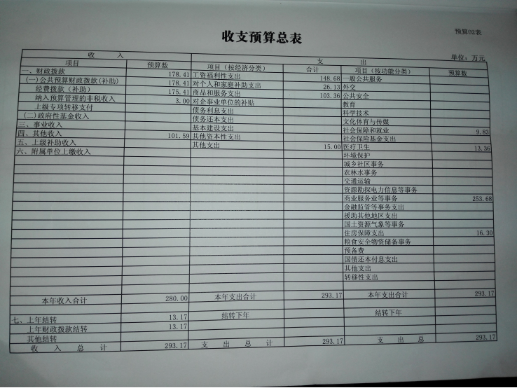 2015年部門預算總收入293.17萬元。按照經費來源劃分包括:(1)財政經費撥款(補助)175.41萬元,(2)其他納入預算管理的非稅撥款3萬元,(4)預計其他收入101.59萬元,(5)上年財政撥款結余(轉)13.17萬元。