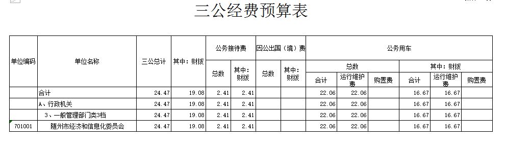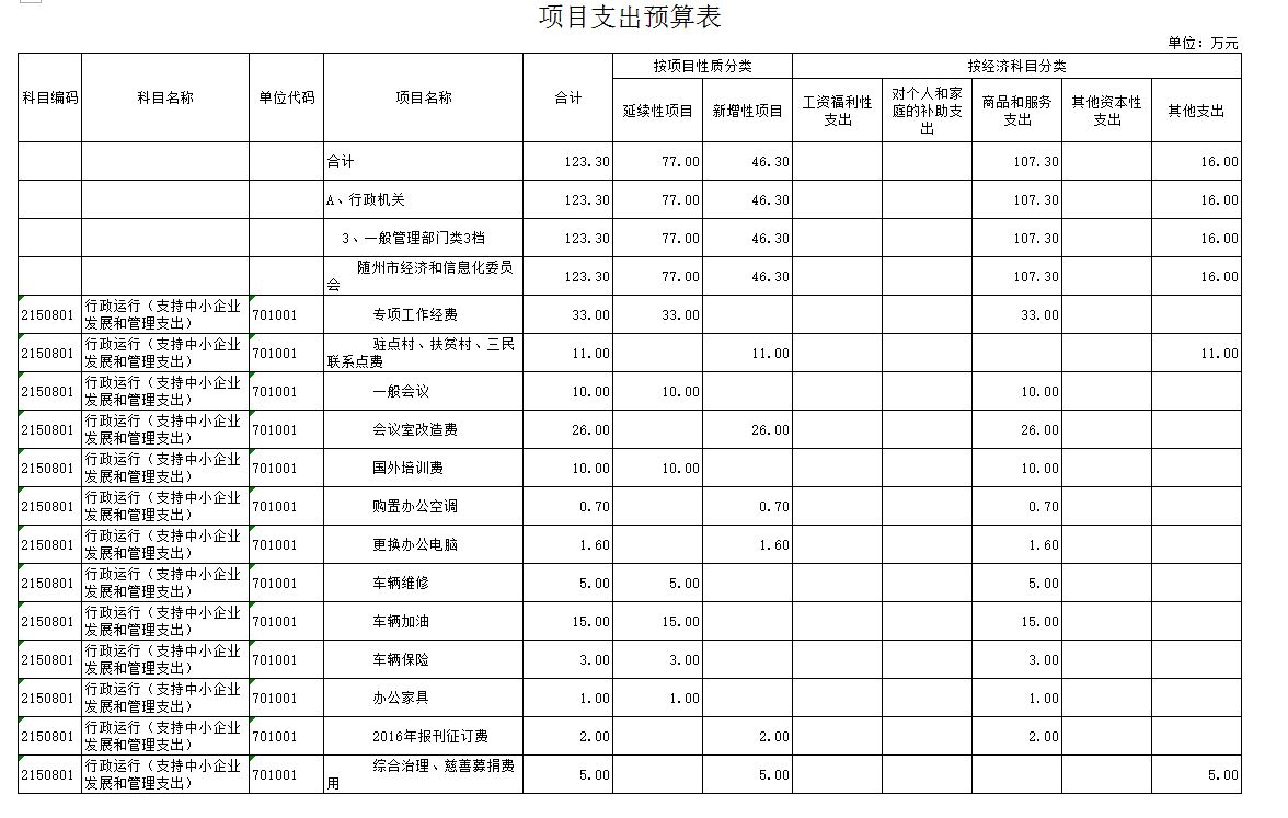 依據《隨州市財政局關于下達2016年市直部門預算的通知》,2016年隨州市經信委預算指標如下: