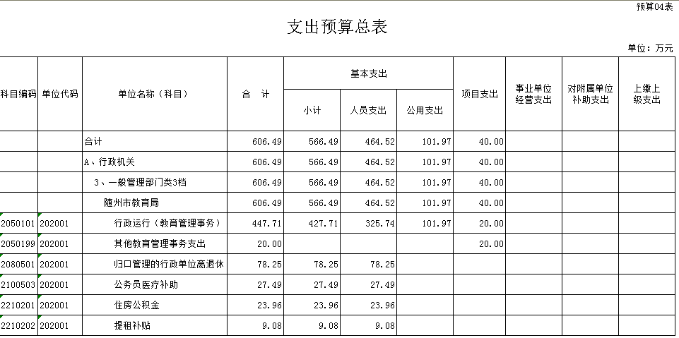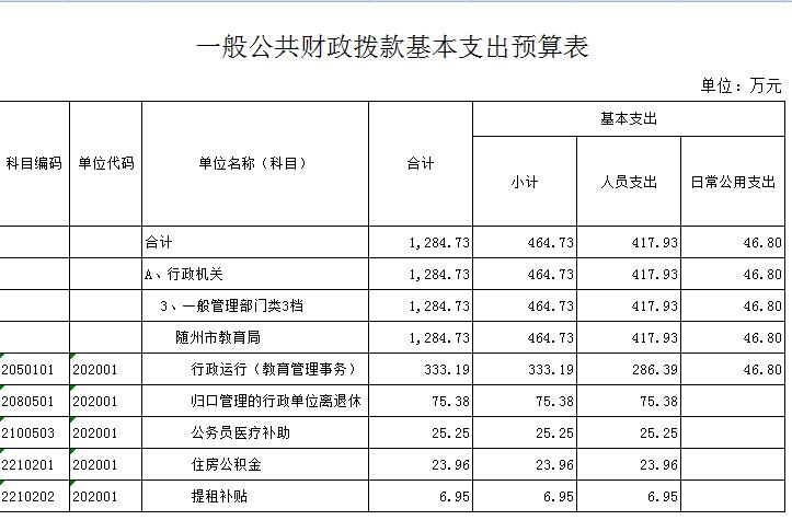 隨州市教育局2016年財政預算公開