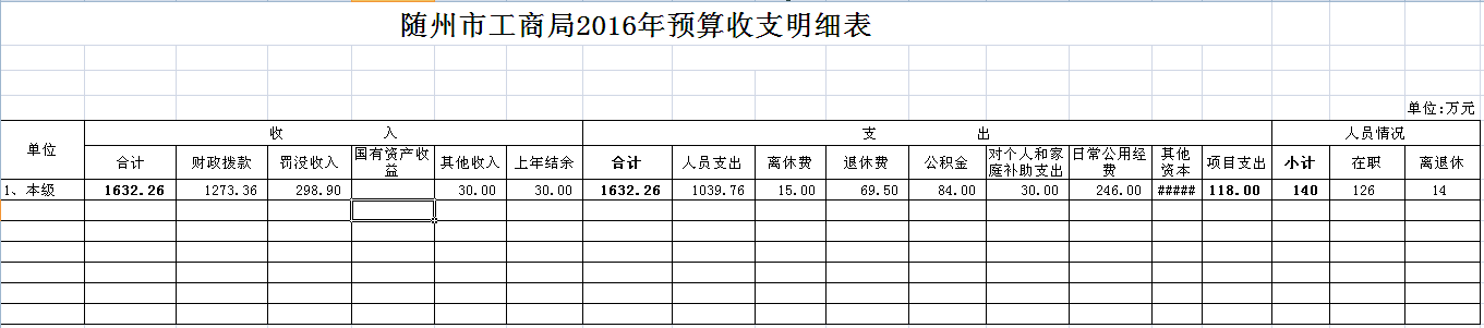 (一)預算收入1632.26萬元。其中:財政撥款1273.36萬元,非稅收入298.9萬元,其他收入30萬元,上年結余30萬元。