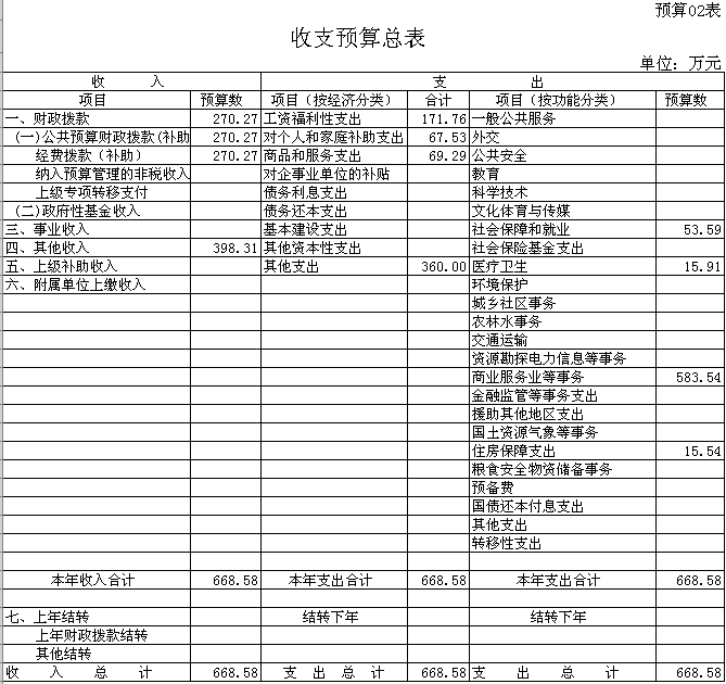 預算總收入668.58萬元。其中基本支出財政撥款240.27萬元,項目支出財政撥款30萬元,其他收入398.31萬元。