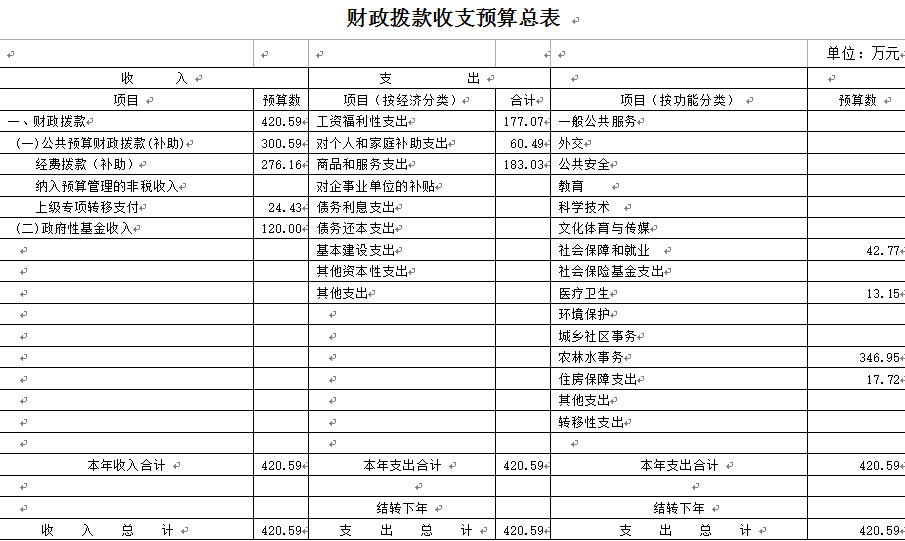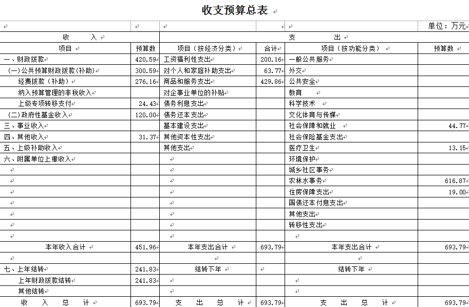 2015年收入預(yù)算總額為693.79萬(wàn)元,其中:當(dāng)年財(cái)政撥款收入420.59萬(wàn)元,其它收入31.37萬(wàn)元,上年財(cái)政結(jié)轉(zhuǎn)241.83萬(wàn)元。