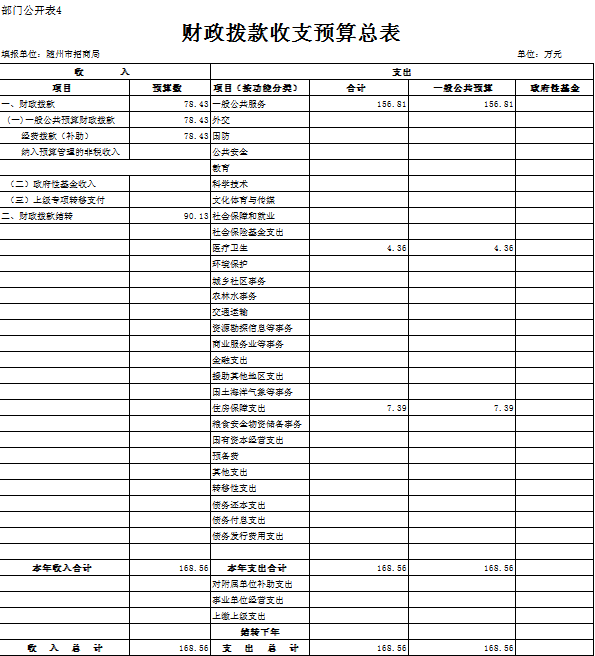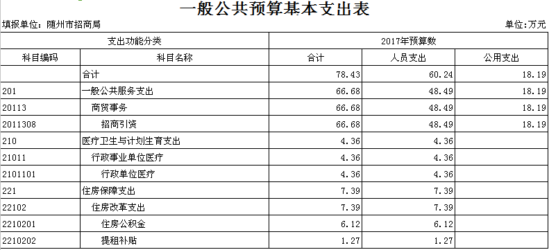 招商局2017年財政撥款支出預算168.56萬元,其中:基本支出78.43萬元,項目支出90.13萬元。按支出功能分,一般公共服務支出156.81萬元,醫療衛生與計劃生育支出4.36萬元,住房保障支出7.39萬元。財政撥款支出較上年增加58.10萬元,同比增長52%,主要是因為2016年公務員薪酬制度改革,用于本年度單位職工薪酬的公共預算財政撥款(補助)增加,另一方面上年招商專班及招商活動結余結轉項目資金。